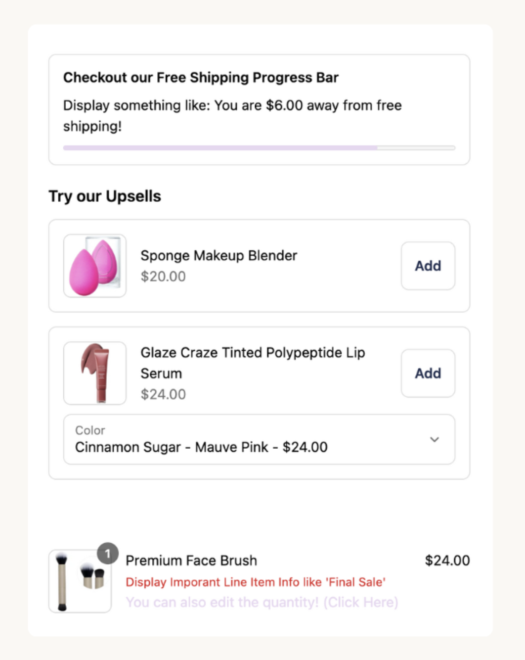 Black Friday and Cyber Monday aren’t just about increasing order volume—they’re about increasing order value. Upsells at checkout are one of the most effective ways to achieve this. Checkout Plus enables merchants to present personalized product recommendations or add-ons right before the customer completes their purchase. The result? Higher average order values (AOV) without additional advertising spend.