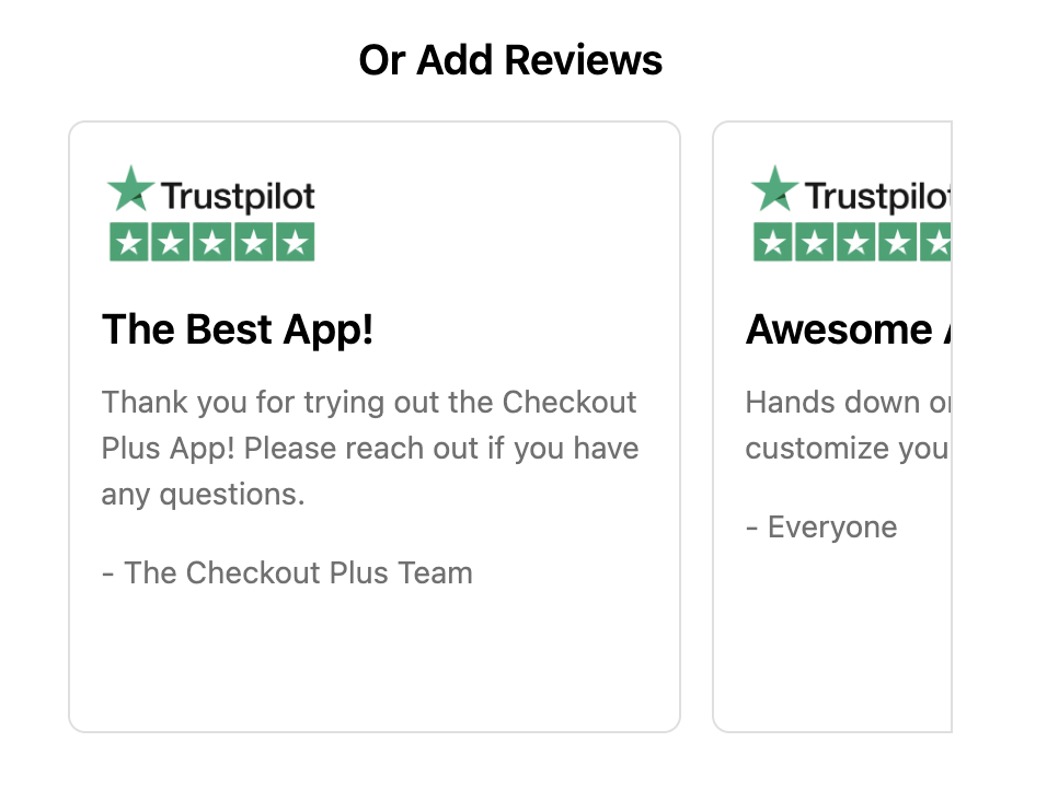 Reviews on Checkout - Display Trustpilot Reviews and Regular Reviews on your Shopify Checkout